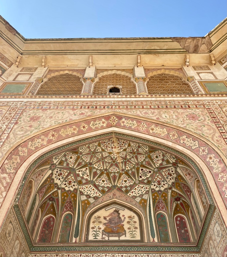 The next day we headed up to the Amber fort, a 16th-century UNESCO World Heritage Site. More history time! The fort was built by Raja Man Singh I in 1592 on older ruins. It combines Hindu and Mughal architecture using the same red sandstone and marble that is found throughout the rest of the city (granted this is slightly older so the city came after). It served as the royal residence until 1727.